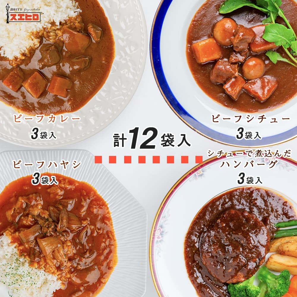 人気ショップが最安値挑戦 全品p5倍 21日 水 9 59迄 カレー 煮込みハンバーグ 各6食 計12食分 詰め合わせ 銀座4丁目スエヒロ ビーフ レトルト ギフト セット 常温保存 贈り物 お礼 老舗 高級 食品 牛肉 洋風 惣菜 湯せん レンジ 保存食 ごはんのお供 お試し